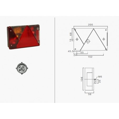 Medidas del piloto : 240x 140 cm. Funciones: posición, stop, dirección, luz de matrícula, triángulo reflectante. 13 pins